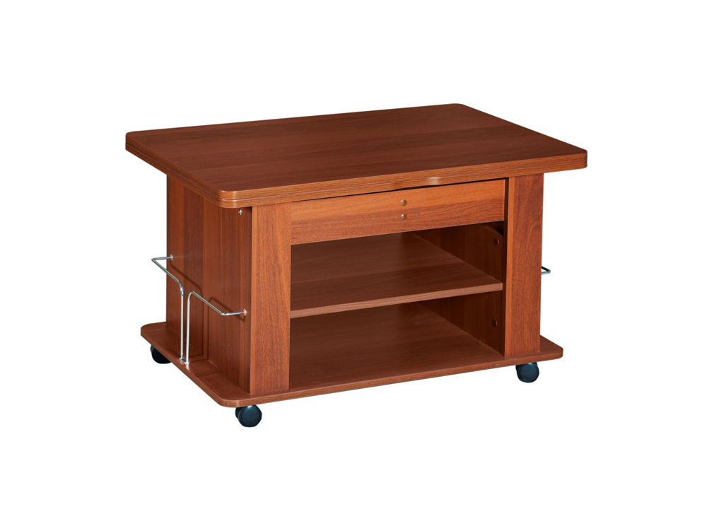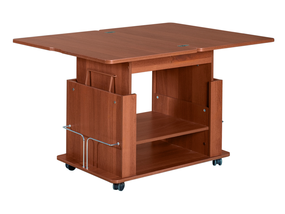 «Агат 19.1» – многофункциональный стол, который может использоваться в различных положениях, представленных на схемах. Это достигается за счет наличия подъемного и поворотного механизмов, которые превращают журнальный стол в обеденный. Данную модель дополняет металлическая газетница и ниша для хранения мелочей.