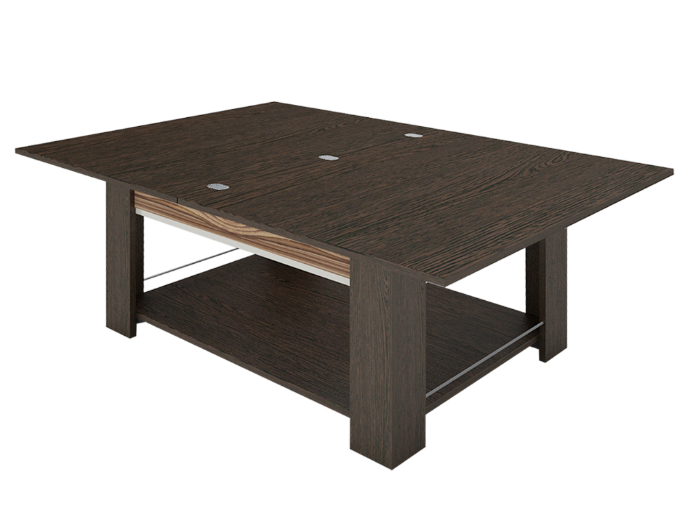 «Агат 24.11» – журнальный стол с механизмом трансформации, позволяющим превращать его в полноценный обеденный. Эффектный рисунок на стекле и контрастные цвета материалов модели, несомненно, украсят любой интерьер.