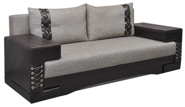 Современный стильный дизайн. Возможность использовать как центральный объект интерьера. Для трансформации требуется небольшое расстояние между стеной и диваном. Ровное спальное место. Наличие бельевого ящика. В основании спинки и сиденья деревянная рамка с латами, на которую кладется пружинный блок с настилом из термовойлока и эластичного листового пенополиуретана. Диван комплектуется приспинными подушками со съемными чехлами и декоративными элементами. П- образные подлокотники выполнены с декоративными накладками из МДФ. При раскладке дивана подлокотники необходимо откатить в сторону, для чего они оснащены роликами. Подлокотники также можно использовать в качестве передвижного столика. Механизм раскладки "Еврокнижка".