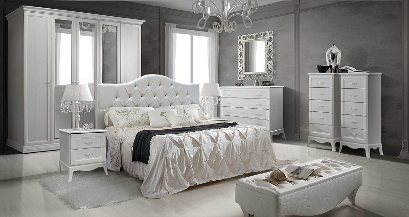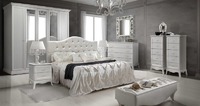 Роскошная спальня «Амели» создана специально для ценителей изысканной мебели. Шикарная двуспальная кровать в комплекте с двумя тумбами станет настоящим украшением комнаты! Искусная отделка профилями из МДФ в сочетании с текстилем смотрятся просто великолепно. Стильные тумбы очень функциональны: два выдвижных ящика вместят в себя необходимые мелочи. Мебели для спальни «Амели» — коллекция в классическом стиле для респектабельного, гармоничного интерьера Вашей спальни.