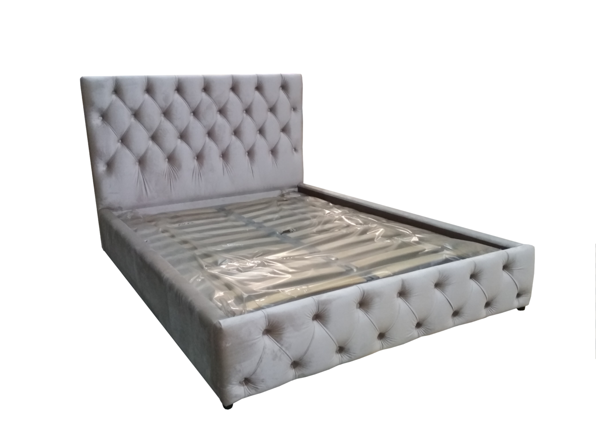 Особенности: Кровать установлена на пластиковые опоры h=25мм. Высота изголовья 1140 мм, изголовье и перядняя царга с каретной стяжкой (пуговицы или стразы).